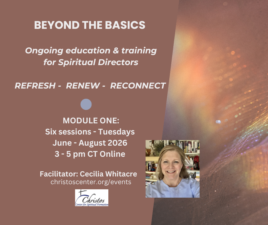 Registration deadline is May 26, 2026 at noon. A minimum of 10 registrations are required for class to be held. A link to the online sessions will be emailed to you the day before the session. Facilitator is Cecilia Whitacre, Christos Chicago Tending the Holy Coordinator and trained supervisor. Questions? Contact cecilia@christoscenter.org