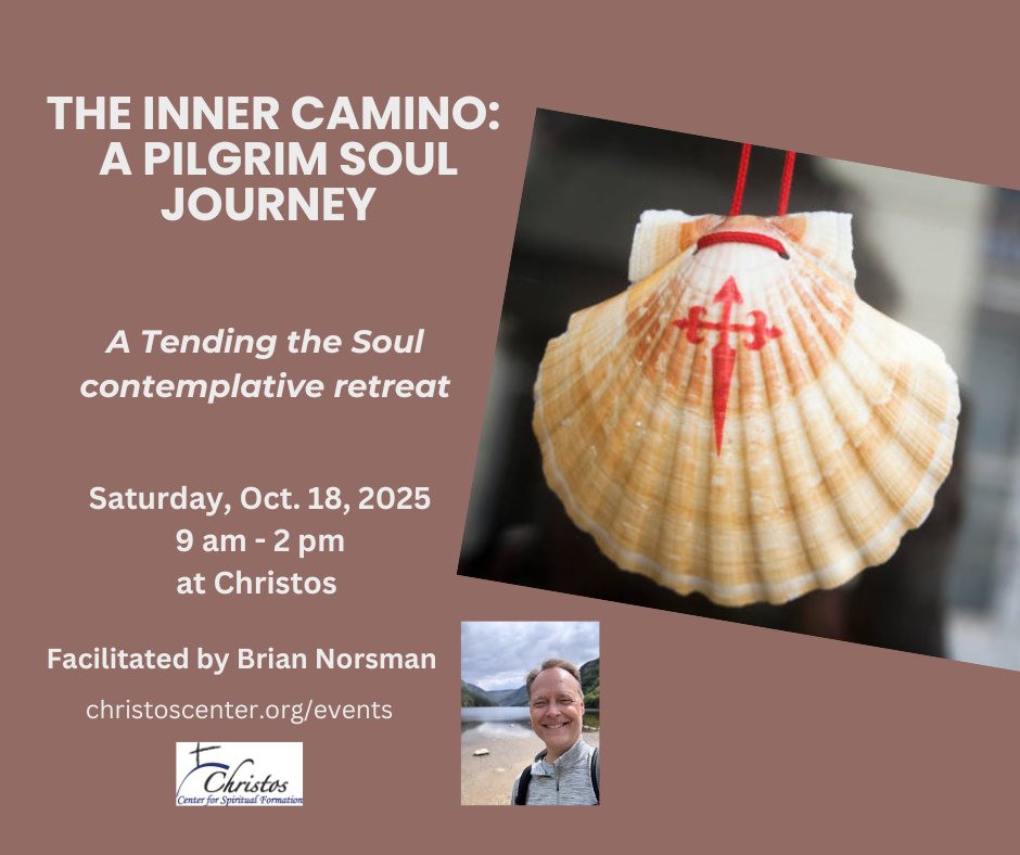 The Tending the Soul retreat "Exploring Holy and Not-So-Holy Invitations" scheduled for Saturday Oct. 18, 2025 has been cancelled and replaced with a NEW retreat at the same time and place (Saturday, Oct. 18 at Christos) with the topic, "The Inner Camino: A Pilgrim Soul Journey." We apologize for the short notice, but if you can join us, we would love to have you! Register by 6 pm on Wed., Oct. 16. The description of the new retreat is described below.